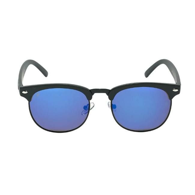 -個洗練された定番デザイン::マットブラックフレームとブルーミラーレンズの組み合わせ。都会的な雰囲気からアクティブシーンまで幅広くマッチします。