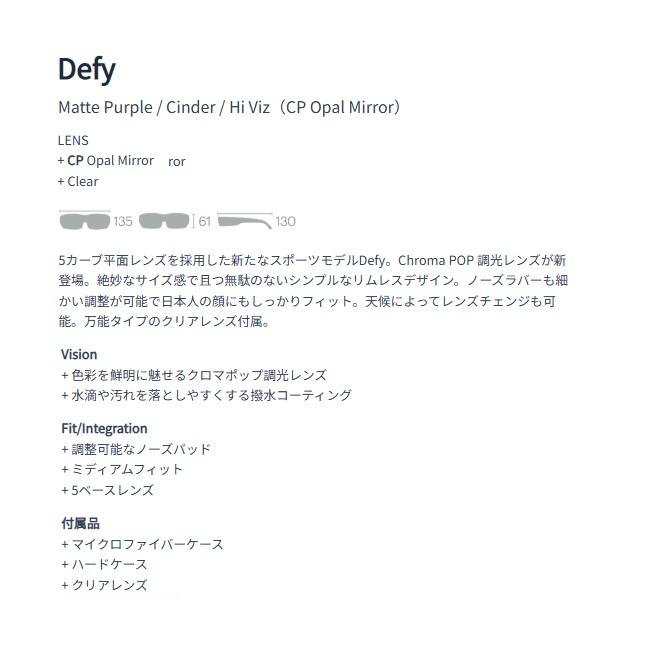 5カーブ平面レンズを採用した新たなスポーツモデルDefy。