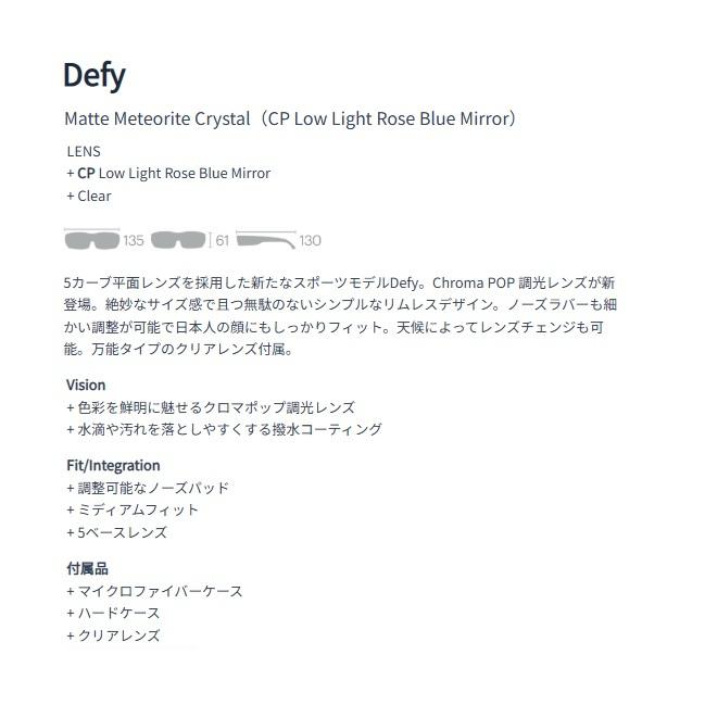 5カーブ平面レンズを採用した新たなスポーツモデルDefy。