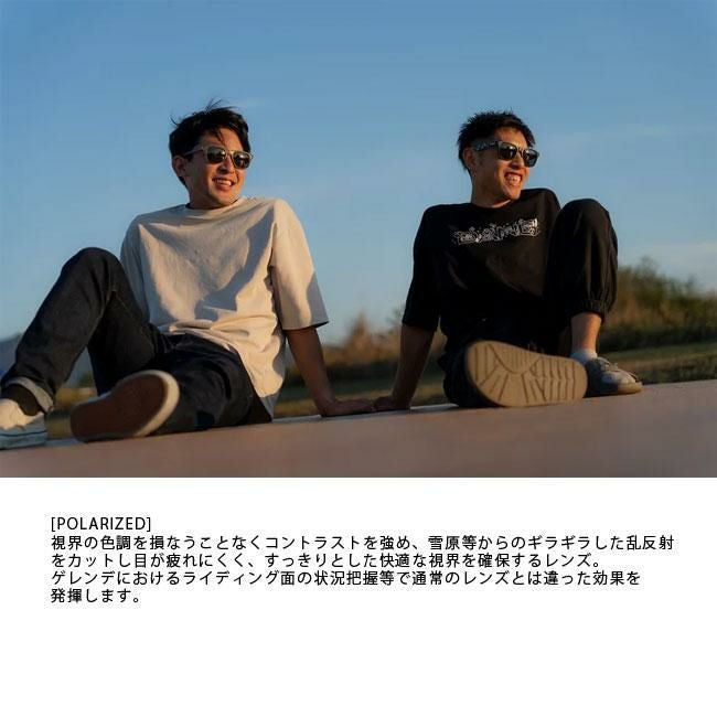 [Polarized (偏光レンズ)] 視界の色調を損なうことなくコントラストを強め、雪原等からのギラギラした乱反射をカットし目が疲れにくく、すっきりとした快適な視界を確保するレンズ。ゲレンデにおけるライディング面の状況把握等で通常のレンズとは違った効果を発揮し