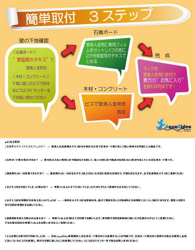 下地不要・ビスをつかなわい・穴跡が分らない! どんな壁にも簡単壁付け Surf・Snow・SK8ボードラック 取付金具に今話題の<壁美人>を採用し家庭用ホチキスで石膏ボードに簡単取付!