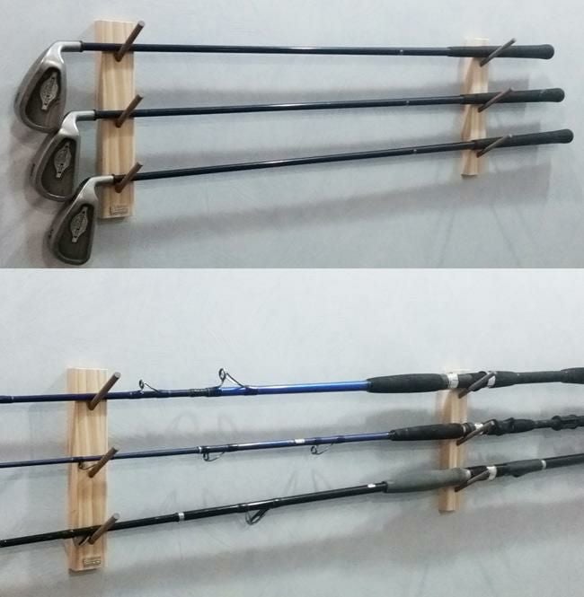 お気に入りのロッドやゴルフクラブをお部屋のインテリアに!下地不要・ビスをつかなわい・穴跡が分らない!どんな壁にも簡単取付けのロッドラック取付金具に今話題の<壁美人>を採用し家庭用ホチキスで石膏ボードに簡単取付!もちろん木壁やコンクリート壁などどんな壁にも取り付け可能[耐荷重3kg 日本製]