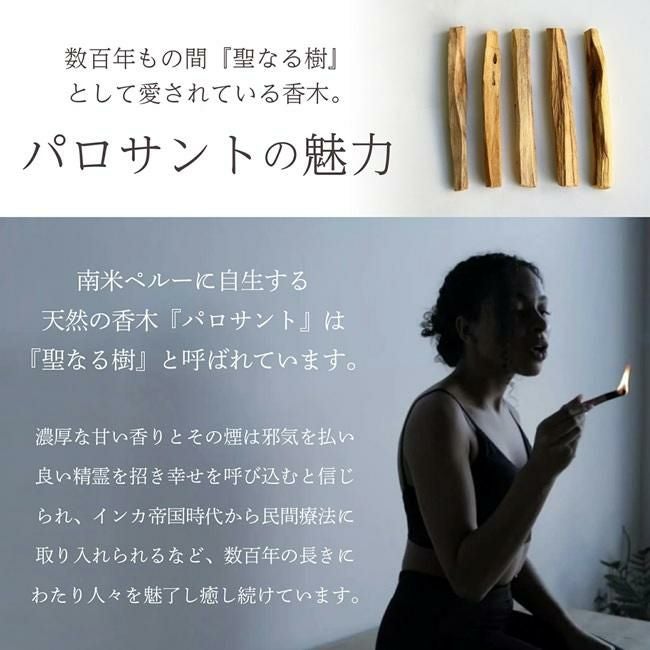天然香木で癒し効果 / 空間浄化に最適な香り / ポジティブエネルギーを引き寄せる / 南米伝統の香木