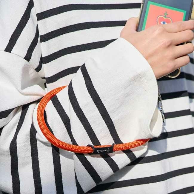 通常のモバイルストラップはナスカンが1つでしたが、ロープ両側にナスカンが付くことにより、