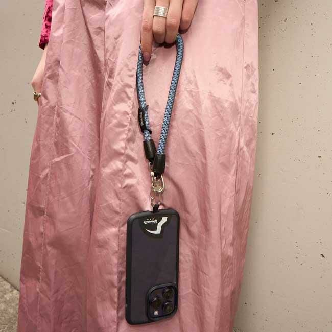 お使いのスマートフォンケースにはさむだけで、あなたの両手を自由に。コーディネートのアクセントにも。