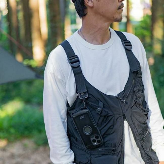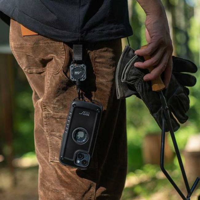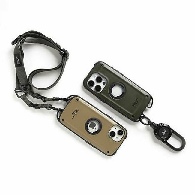 米国環境耐性試験「MIL-STD-810G516.6ProcedureIV」の耐衝撃試験に準拠した耐衝撃性能はもちろん、下部に搭載されたカラビナループにはカラビナなどを直接ケースに取り付ける事ができるので、バックパックやショルダーバッグ・ベルトループ等にiPhoneをそのまま装着、登山やアウトドア時の落下防止が可能です。ポートホールから背面のアップルマークが見える構造を採用し、かつての「アウトドア」のイメージにあった大きい・ゴツい・タフネス過ぎる外見を覆しつつもパワフルさを感じさせるスタイリッシュなデザインに仕上げました。登山やキャンプ・フィッシングなどアクティブなシーンで幅広く活躍します。