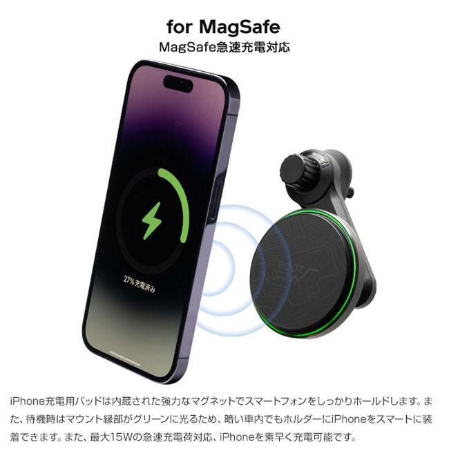 MagSafe対応車載スマホスタンド エアコン吹き出し口 ワイヤレス充電器 Magsafe スマホ充電器 ROOT CO. ルート コーPLAY EZ1 MagSafe Wireless Car Charger 車 車載用ホルダー スマホホルダー スマートフォン 春夏 秋冬
