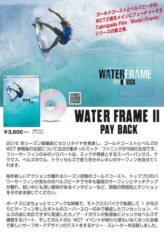他の画像を見る 【送料無料】2本以上購入でさらに5%OFF SURF DVD WATER FRAME 2 PLAY BACK ウォーター フレーム ミック・ファニング サーフィンDVD 定価 ¥ 3,960 のところ 特別価格 ¥ 3,564 税込 カートに入れる お気に入りに登録する