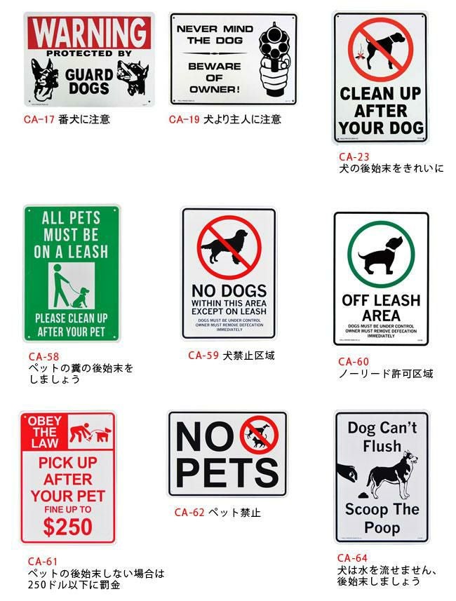 他の画像を見る 【メール便対応可】番犬に注意/犬より主人に注意/犬の後始末をきれいに/ペットの糞の後始末をしましょう/犬禁止区域/ノーリード許可区域 プラスティック サインボード 犬 ペット ドッグ PLASTIC SIGN BOARD アメリカン 春夏 秋冬 定価 ¥ 1,078 のところ 特別価格 ¥ 998 税込 カートに入れる お気に入りに登録する