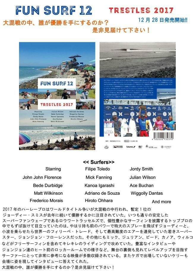 他の画像を見る 【送料無料】2本以上購入でさらに5%OFF SURF DVD FUN SURF 12 TRESTLES 2017 ファンサーフ 人気シリーズの最新作 サーフィンDVD 定価 ¥ 2,200 のところ 特別価格 ¥ 1,980 税込 在庫切れ 詳細を見る お気に入りに登録する