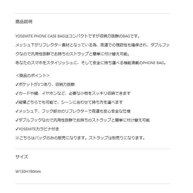 他の画像を見る スマホをスタイリッシュに、安全に持ち運べる機能満載のBAG YOSEMITE ヨセミテ YOSEMITE PHONE CASE BAG スマホ スッキリ収納 バッグ 定価 ¥ 7,700 のところ 特別価格 ¥ 7,700 税込 カートに入れる お気に入りに登録する