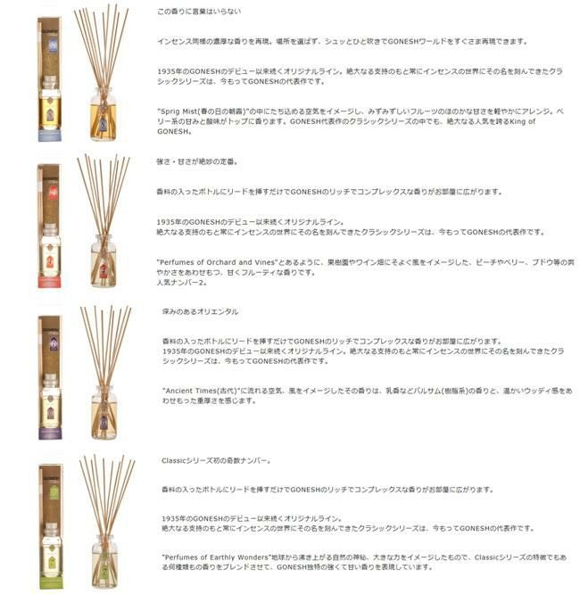 他の画像を見る ガネシュ 火を使わずに楽しむフレグランスボトル GONESH ガーネッシュ REED DIFFUSER リード ディフューザー NO.8/NO.7/NO.6/NO.4 定価 ¥ 2,090 のところ 特別価格 ¥ 1,254 税込 在庫切れ カートに入れる お気に入りに登録する
