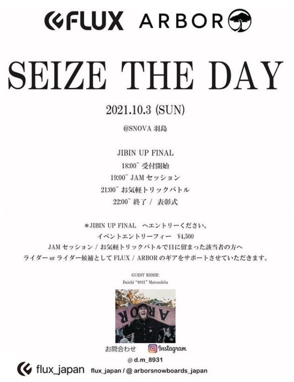 “JIBIN UP”の最中に @arborsnowboards_japan @flux_japan がライダーを発掘する「SEIZE THE DAY」を開催💥