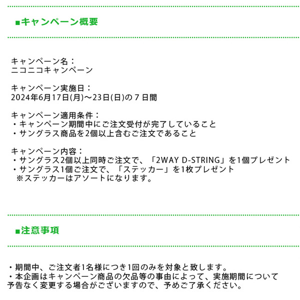 🎁2点以上ご購入いただいたお客様全員にDANG SHADESオリジナル・グラス・ストラップ「2WAY D-STRING」を1個プレゼント。